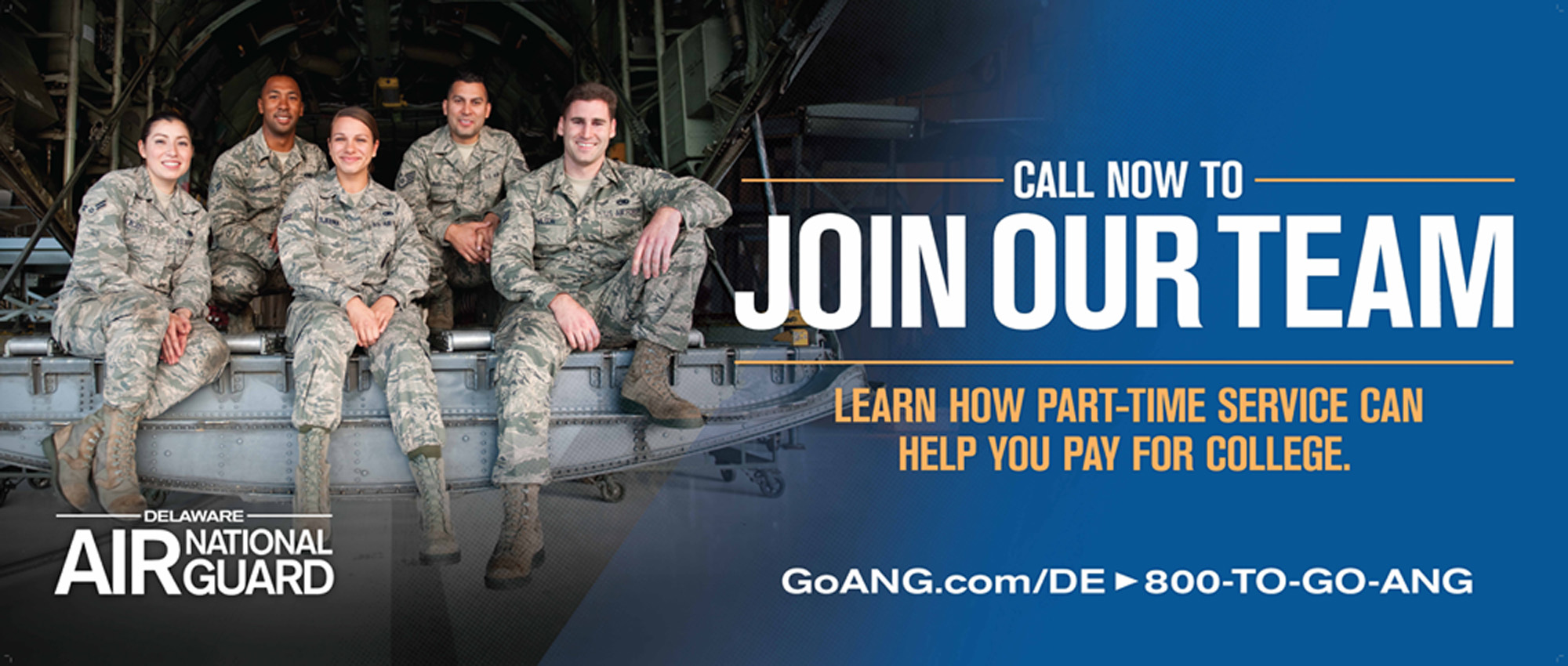 To learn more about part-time Air National Guard jobs available within the Delaware ANG, visit the Go ANG link.